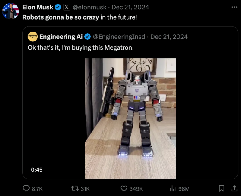 馬斯克作為科技界的領(lǐng)軍人物,對(duì)AI玩具的發(fā)展給予了高度關(guān)注。此前,他在社交媒體上點(diǎn)贊了一款中國(guó)制造的AI玩具,相關(guān)話題迅速登上熱搜,引發(fā)了人們對(duì)AI玩具的廣泛關(guān)注。隨后,特斯拉也推出了自己的機(jī)器人玩具,售價(jià)40美元,上線不到24小時(shí)就被搶購(gòu)一空,二手貨甚至被炒到上千美元。