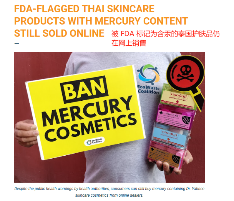 持續(xù)生產(chǎn)、進(jìn)口、分銷和銷售摻有汞的化妝品令人深感不安,盡管多個市場和平臺都禁止銷售這類產(chǎn)品,例如Shopee和Lazada都禁止銷售違禁產(chǎn)品,但Dr. Yahnee、Goree和其他含汞化妝品仍存在于平臺上。