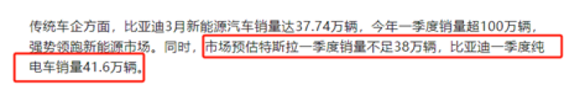 比亞迪純電車銷量超越特斯拉 圖源:中國證券報
