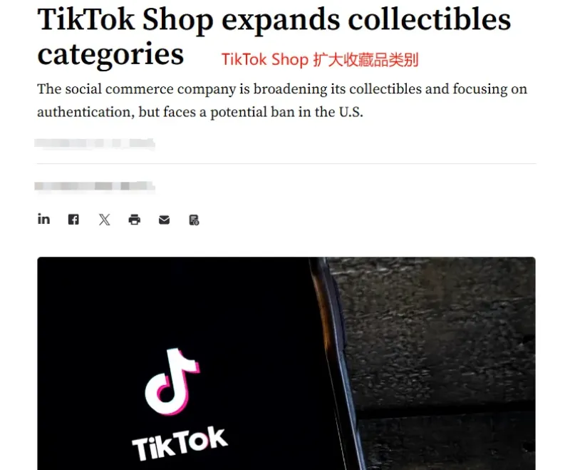 而在掘金二手市場方面,TikTok Shop近段時間動作頻頻,今年1月,TikTok Shop新增了10個收藏品類別,包括傳統漫畫書、漫畫、粉絲刊物、體育紀念品、簽名球衣等,極大擴展了二手業務范圍。