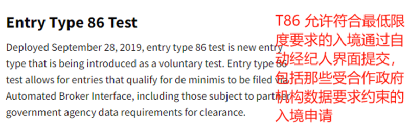 T86清關模式介紹 圖源:CBP