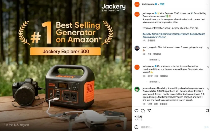 華寶新能發(fā)電機銷量第一?圖源:Instagram