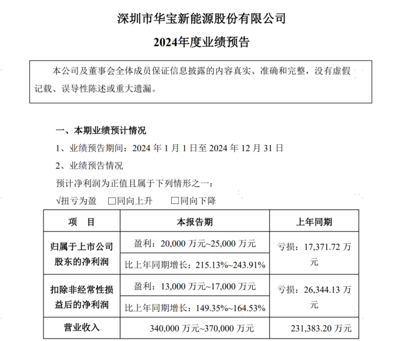 值得注意的是,在2023年華寶新能還深陷虧損1.74億元的泥沼中,因此能在2024年拿到這樣的成績,實屬不易。