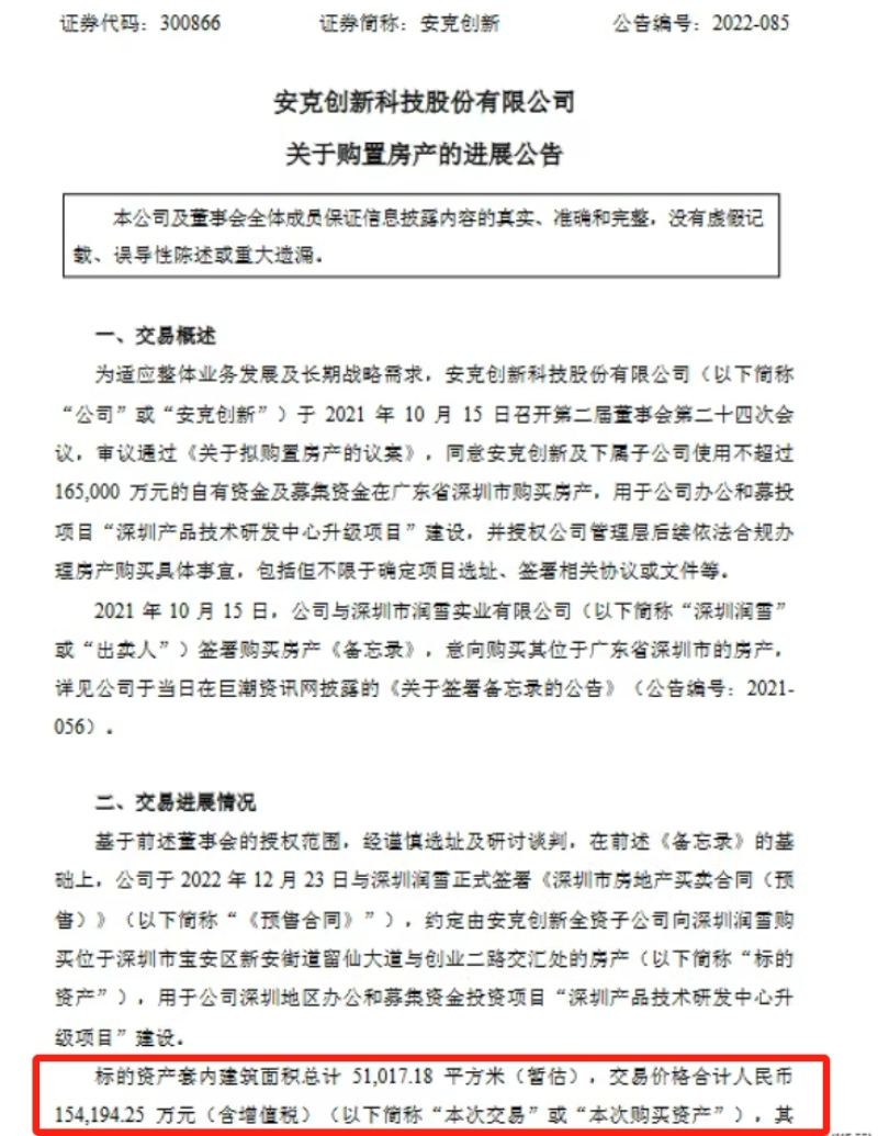 其中,深圳承擔的是研發(fā)重任,早在2012年安克便在此設立了研發(fā)中心,而為了長期經營及業(yè)務的穩(wěn)定性,2022年,安克創(chuàng)新以人民幣15.4億元的價格買下了深圳寶安區(qū)一棟房產,套內建筑面積達5.1萬平方米。