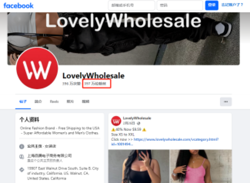 憑借對國內強大服裝產業鏈的充分利用,LovelyWholesale迅速在北美市場站穩腳跟。2014年,它成為中國大陸首家成功登陸Facebook的女裝品牌,目前在平臺上積累了近400萬粉絲。2016年,品牌年GMV已突破數億美元,成功擠進行業頭部玩家梯隊。