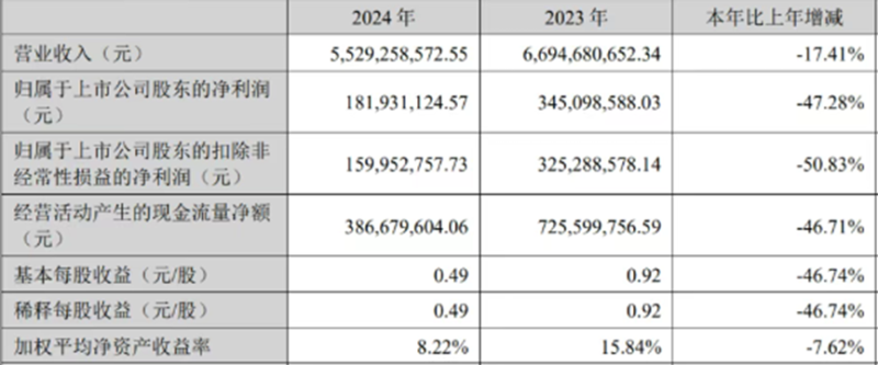 消息顯示,近日,A股上市大賣廈門吉宏科技股份有限公司(以下簡稱“吉宏股份”)發布了最新年度財報,財報數據顯示,2024年全年,吉宏股份實現營業收入55.29億元,同比下降17.41%;歸屬上市公司股東的凈利潤為1.82億元,同比大幅下降47.28%;扣除非經常性損益后的凈利潤更是直接跌去50%以上。
