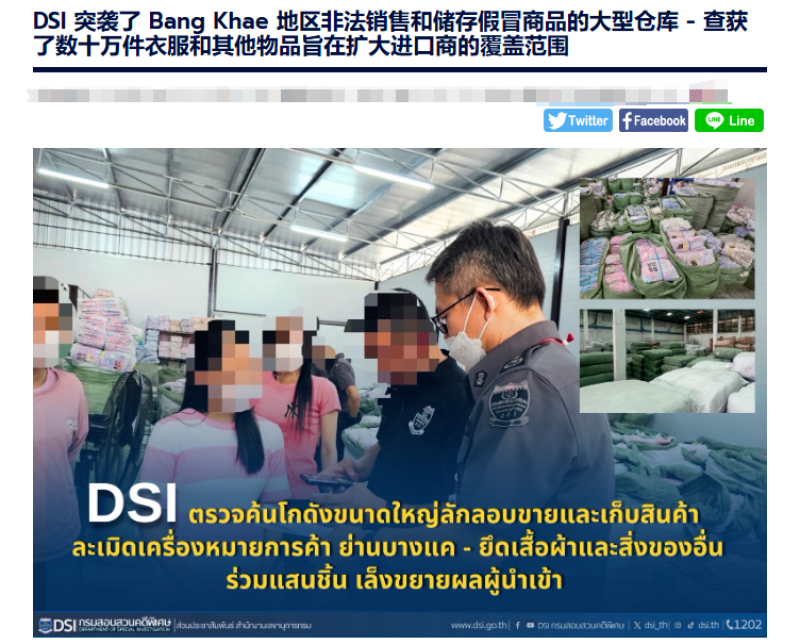 不久前泰國特別調查局(DSI)突襲了曼谷Bang Khae地區的三處倉庫,發現其中一處存在大量侵犯著名公司商標的服裝和其他產品,包括日本三麗鷗有限公司的商標、美國迪士尼企業公司的商標等。
