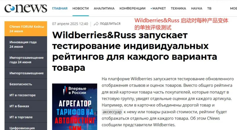不過該系統目前僅針對部分用戶進行測試,具體要看測試結果如何,Wildberries再決定是否向所有用戶推出該功能。