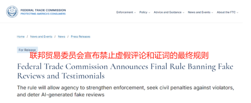FTC明令禁止虛假評論 圖源:FTC