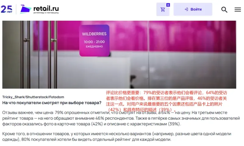 在推出新評級系統之前,Wildberries&Russ聯合公司研究中心曾進行過一項關于“對影響用戶在市場上購買商品時決策的因素”的調查,結果顯示,產品評級僅次于評論(79%)和價格(64%),位列第三,有46%的受訪者關注這一點。