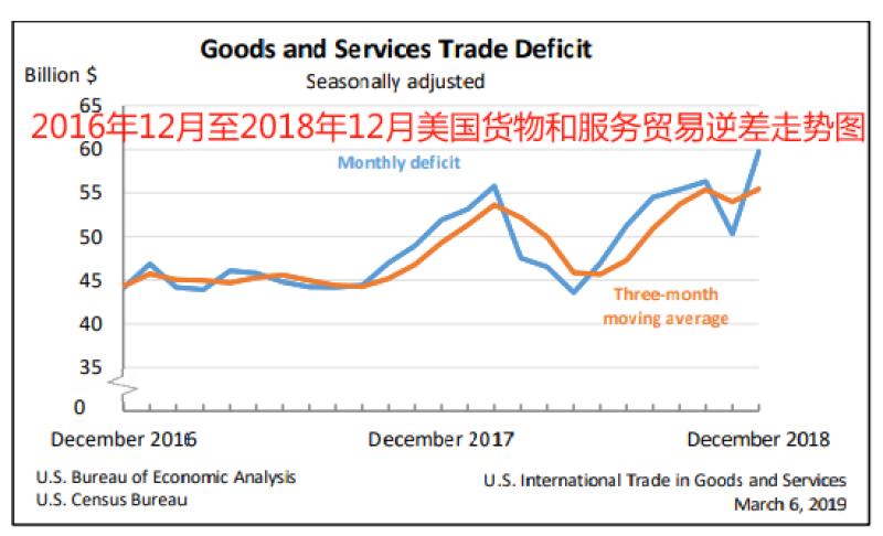美國貨物和服務貿易逆差走勢圖 圖源:美國人口普查局