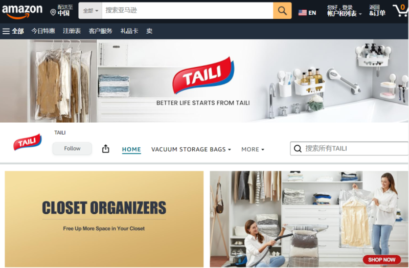 2019年,太力科技開始布局亞馬遜、Lazada等海外電商平臺,憑借“高性價比”策略迅速打開市場。以真空收納袋為例,其產品定價僅為同類國際品牌的60%,但質量與功能毫不遜色。其推出的大容量、抗菌型壓縮袋還獲得了亞馬遜的“Best Seller”和“Amazon’s Choice”標簽。數據顯示,2024年上半年,其亞馬遜平臺收入同比增長113.39%,跨境電商業務占比提升至24.22%。