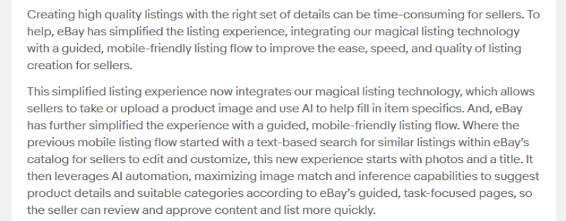 相較此前需手動搜索類似商品再編輯的流程,新體驗以圖像和標題為起點,并通過任務導向型界面引導賣家快速審核和確認發(fā)布內(nèi)容。eBay表示,這種新方式能顯著減少操作步驟并提升移動端使用便利性。