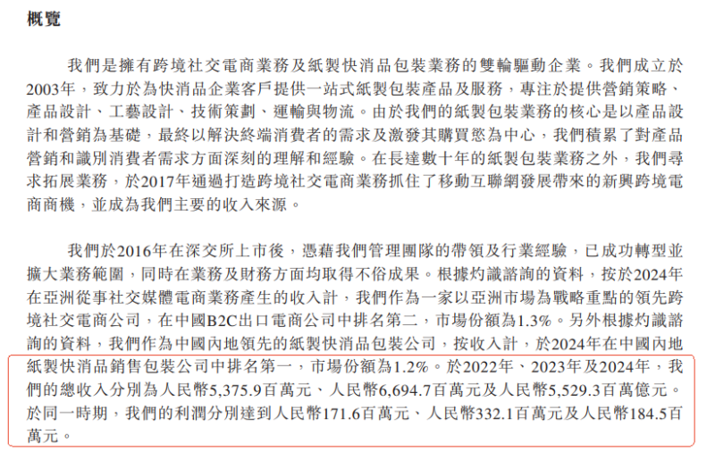 其中,跨境社交電商業務收入分別占公司總收入的57.8%、63.6%及60.9%,其毛利率分別為59.1%、63.1%及60.5%。于往績記錄期間,公司已為約1700萬名消費者簽收超過4100萬份訂單,且有逾611,000個SKU。