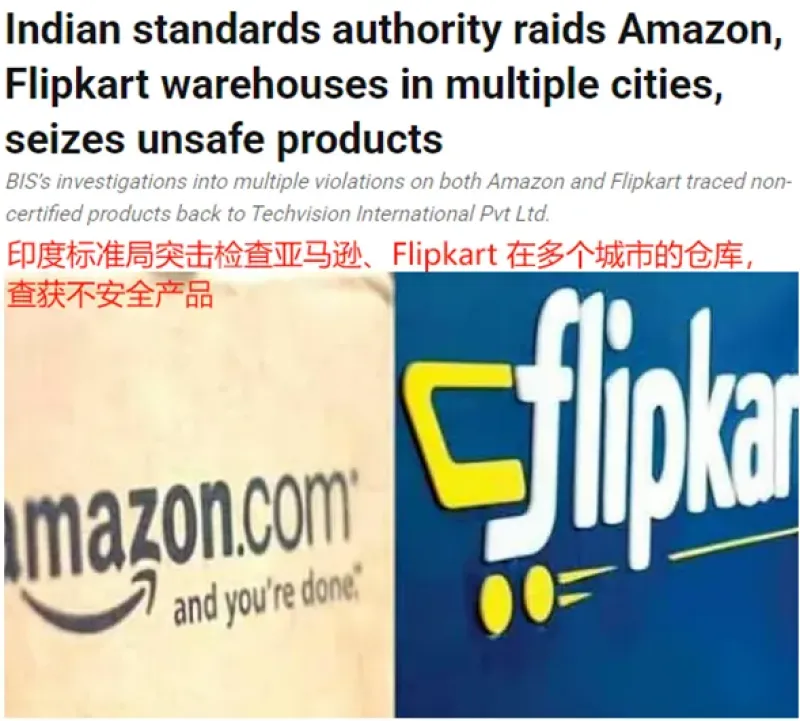 事實上,上個月初BIS才剛剛進行過一場突襲行動。當時其對亞馬遜、Flipkart等多家電商平臺的倉庫進行突擊檢查,從搜查情況來看,市場上仍存在很多未經BIS強制認證的違規商品
