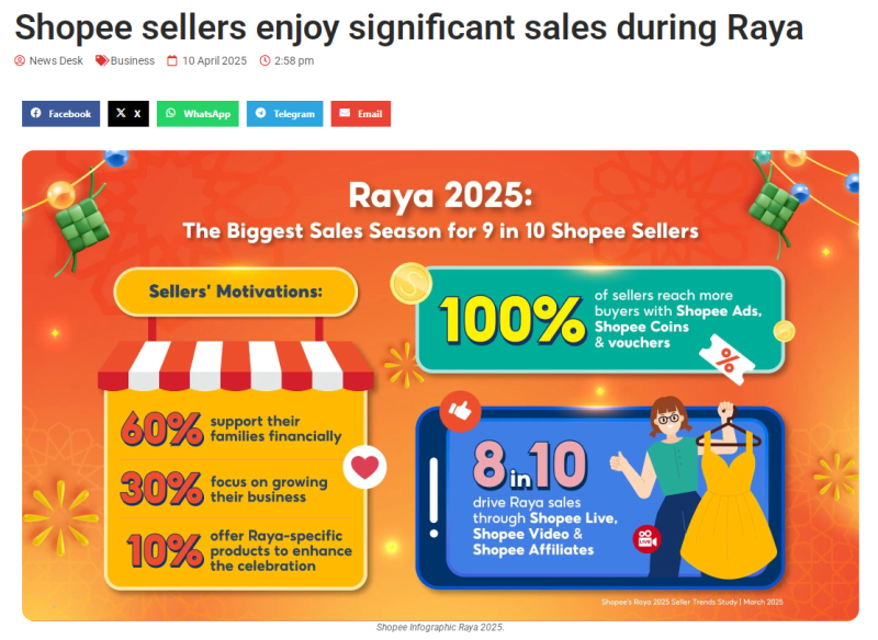 Shopee開齋節期間超90%賣家銷售額顯著增長