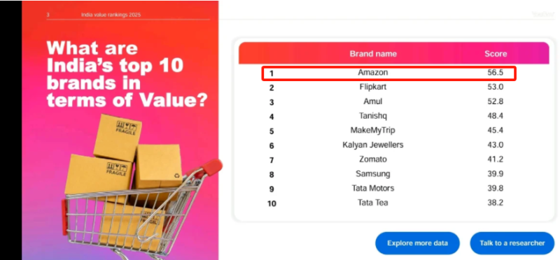 就特朗普選擇亞馬遜作為其電商業務的起點這一件事而言,進一步證明了亞馬遜作為出海賣貨平臺的獨特價值和優勢。關于這方面,亞馬遜用事實證明了自身實力,無論是全球范圍的整體比拼還是在具體某個市場上的競技,亞馬遜都頻頻奪得頭魁:在日本市場,亞馬遜超過樂天、雅虎等競爭對手成為當地第一大電商平臺;在印度市場,亞馬遜以56.5分的高分趕超本土電商巨頭Flipkart,成為該市場的Top 1品牌。