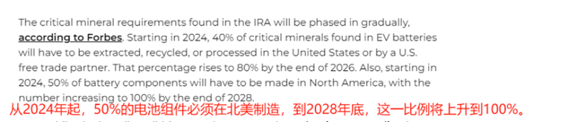 客觀上看,寧德時代擴大海外產能具有現實緊迫性。2022年,美國頒布《通脹削減法案》,要求2024年起電動車電池組件50%在北美生產,2029年提升至100%;自去年以來,歐洲多家大型汽車制造商如寶馬、PSA、雷諾和大眾等,也在談判業務時多次明確提出2027年后電池必須是本土生產這一立場。