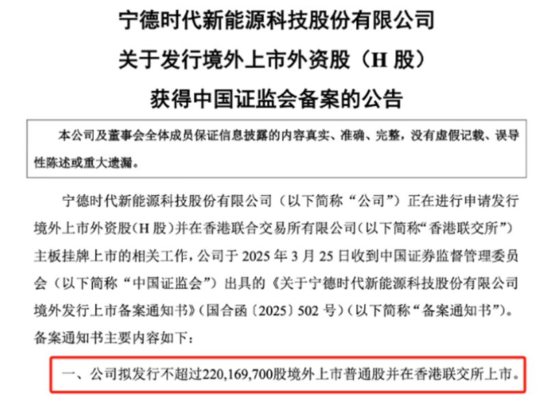 今年2月11日,寧德時代在港交所遞交招股書,擬在香港主板上市;次月25日,該公司便成功獲中國證監會《境外發行上市備案通知書》,核準發行不超2.2億股H股;3月26日晚,證監會官網又悄然發布《關于核準寧德時代新能源科技股份有限公司境外首次公開發行股份的批復》;從備案通過到聆訊通過,寧德時代更是只花了25天就成功通關,刷新紀錄,速度驚人。