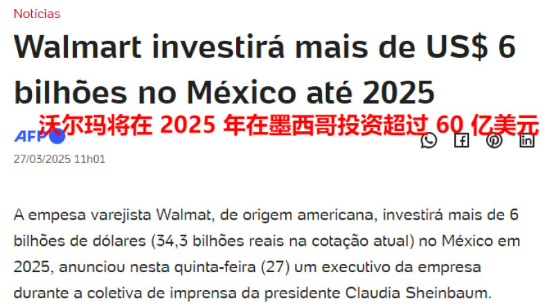 沃爾瑪將投資墨西哥60億美元 圖源:noticias.uol