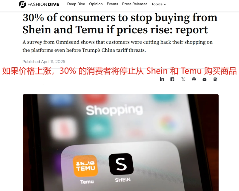 這樣一來,像Shein、Temu這類原本就主打高性價比的電商平臺優勢難以繼續,單件成本或增加5%~15%,甚至連獨立站賣家的利潤率也將壓縮20%~35%。
