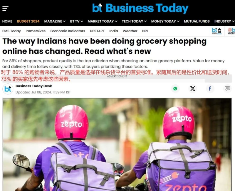 根據LocalCircles的一項調查,在印度7萬多名在線購買雜貨的消費者中,有73%的人會優先考慮和性價比和送貨時間,這一比例僅次于產品質量(86%)。還有17%的人表示,為了能在30分鐘內收到雜貨商品,他們甚至愿意接受支付配送費。