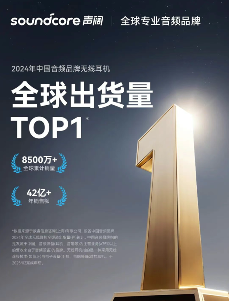 聲闊全球出貨量第一 圖源:soundcore聲闊