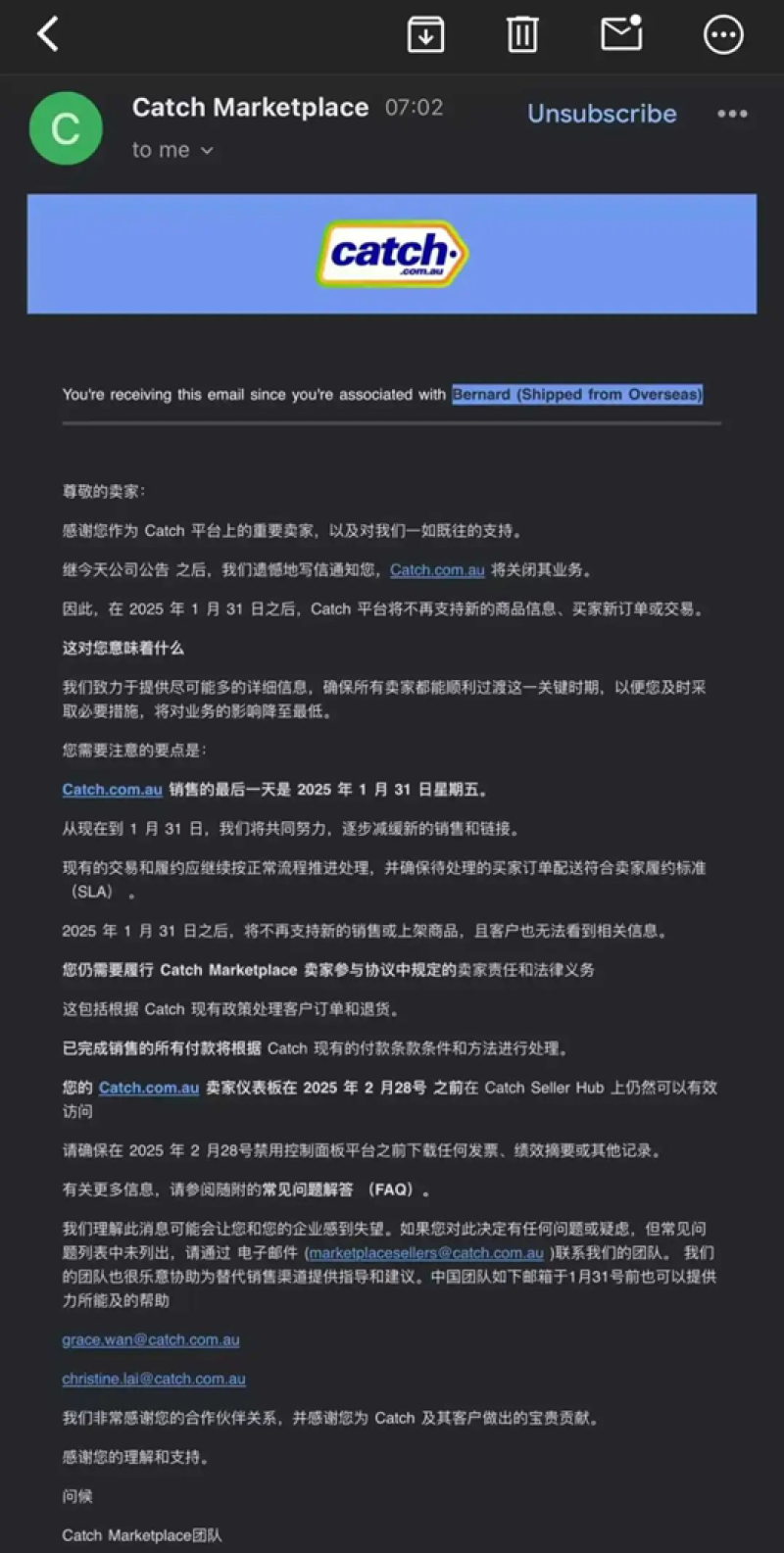 Catch澳大利亞關(guān)閉 圖源:Catch Marketplace