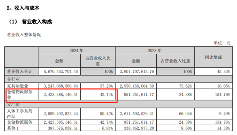 財(cái)報(bào)數(shù)據(jù)顯示,截至目前,該公司在全球已擁有21個(gè)自營(yíng)海外倉(cāng),總面積達(dá)到66.21萬(wàn)平方米,倉(cāng)儲(chǔ)物流業(yè)務(wù)的營(yíng)收比重也從2021年的不到6%一路攀升至2024年的42.74%。