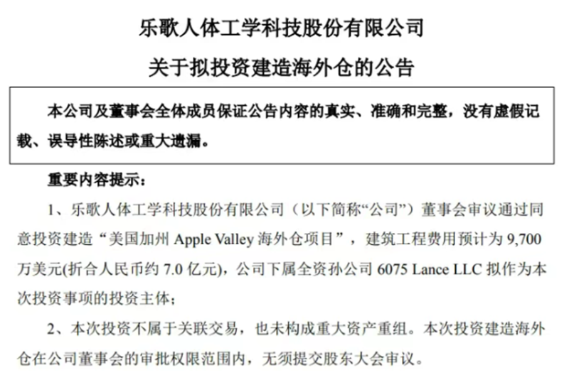 樂(lè)歌斥資7億元新建海外倉(cāng) 圖源:樂(lè)歌股份
