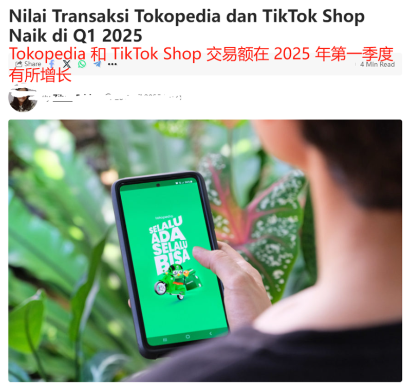 近日,官方消息透露稱,TikTok印尼以及TikTok在印尼的控股子公司Tokopedia近來(lái)線上銷(xiāo)售業(yè)績(jī)表現(xiàn)亮眼,2025年第一季度交易量呈現(xiàn)大幅上升趨勢(shì)。其中,食品和飲料、汽車(chē)、時(shí)尚、家居產(chǎn)品、美妝個(gè)護(hù)是這兩大平臺(tái)上最暢銷(xiāo)的產(chǎn)品類別。