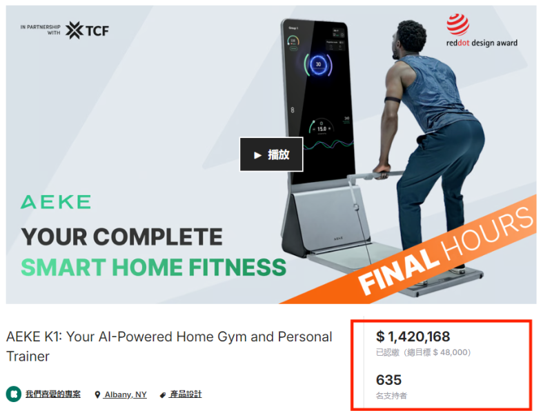 AEKE運動鏡眾籌刷新紀錄 圖源:Kickstarter
