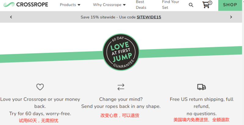 “酒香也怕巷子深”,Crossrope深知社交媒體的強大影響力,在YouTube、Instagram等平臺上積極布局。與此同時,為消除用戶購買高價跳繩的顧慮,Crossrope采取多種手段提升顧客信任度。在產品頁面以靜態圖標明確承諾60天試用期、美國境內免費送貨及全額退款政策,讓用戶放心購買。