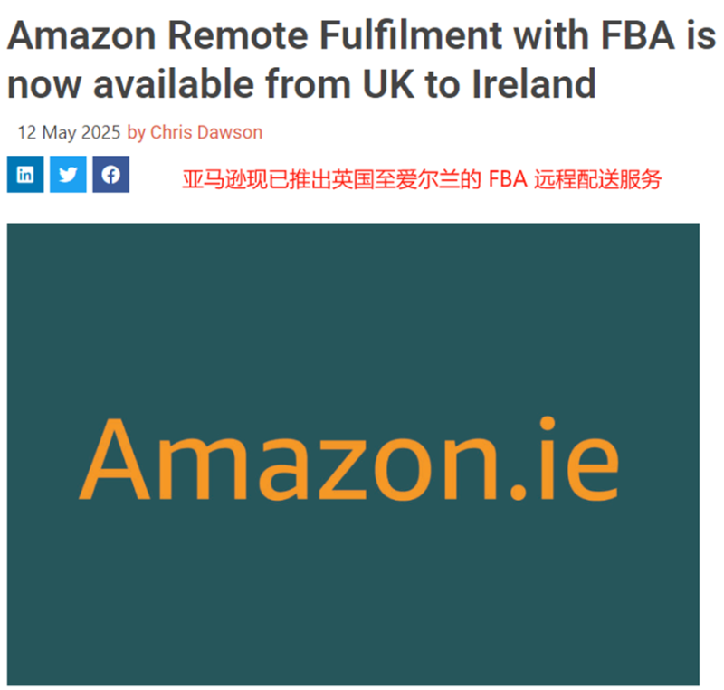 消息顯示,跨境電商巨頭亞馬遜近日宣布推出從英國(guó)站到愛(ài)爾蘭市場(chǎng)的FBA遠(yuǎn)程配送新服務(wù),主要通過(guò)亞馬遜物流遠(yuǎn)程配送功能(Remote Fulfilment with Fulfilment by Amazon)實(shí)現(xiàn),旨在進(jìn)一步擴(kuò)展英國(guó)賣(mài)家的跨境銷(xiāo)售渠道,使其能夠更便捷地接觸愛(ài)爾蘭市場(chǎng)的消費(fèi)者。