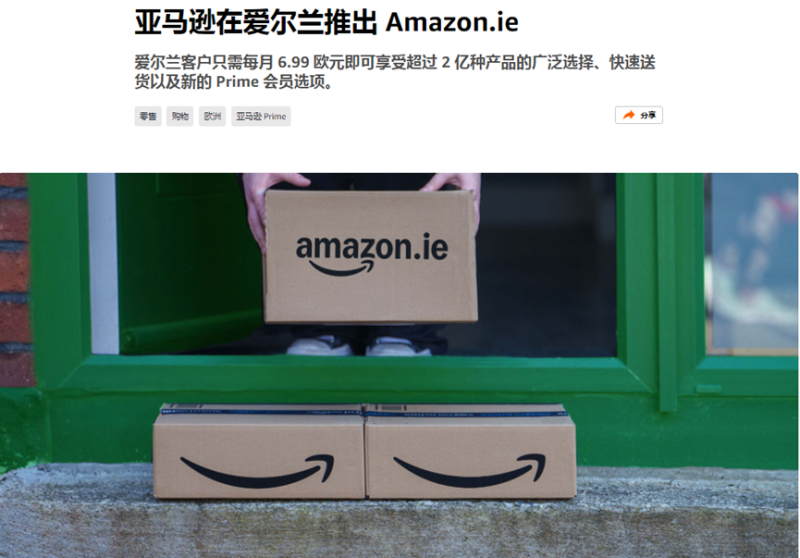 亞馬遜上線愛(ài)爾蘭站點(diǎn) 圖源:About Amazon