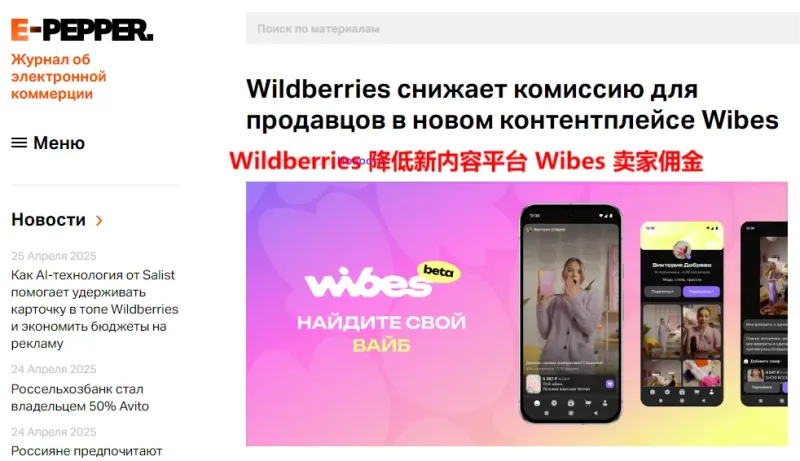 Wildberries降低Wibes賣家傭金 圖源:e-pepper.ru