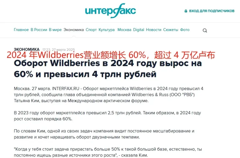 憑借在電商領域多年持續深耕,Wildberries在俄羅斯的路越走越順,優勢地位越發穩固。