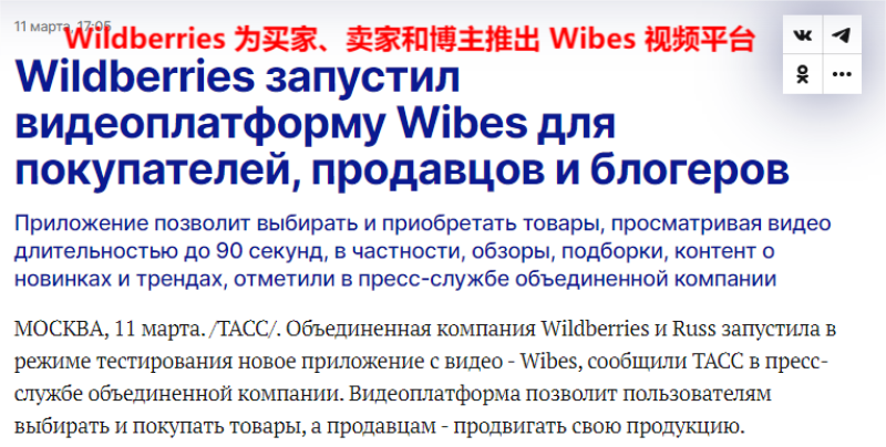 Wildberries推出視頻購物應(yīng)用 圖源:tass.ru