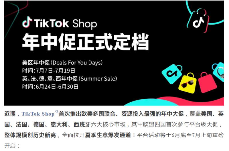 年中大促正式定檔?圖源:TikTok Shop跨境電商