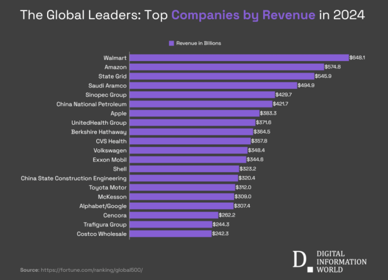 客觀來講,沃爾瑪能夠取得這樣的成績并不令人意外,畢竟作為全球零售巨頭,沃爾瑪的實力無需多言。早在今年年初,《財富》雜志公布的2024年全球收入最高公司榜單就顯示,沃爾瑪以6481億美元的收入穩居榜首,領跑全球零售行業。