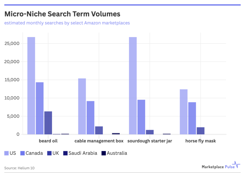 不同站點小眾產品搜索量對比 圖源:Marketplace Pulse