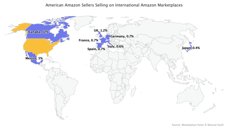 美國賣家進入不同市場比例 圖源:Marketplace Pulse