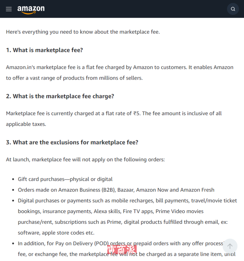 盡管亞馬遜宣布統(tǒng)一收取費用,但特定商品和服務(wù)類型將豁免于該項收費。其中包括實體或電子禮品卡訂單、通過Amazon Business、Bazaar、Amazon Now和Amazon Fresh平臺下的訂單,以及各種數(shù)字服務(wù),如手機充值、水電賬單支付、保險購買、應(yīng)用和訂閱服務(wù)、Prime Video租借與購買、以及通過電子郵件交付的數(shù)字商品(如軟件或蘋果商店兌換碼)等。此外,貨到付款訂單或存在其他費用(如優(yōu)惠處理費、換貨手續(xù)費)的訂單,5盧比費用不會單獨顯示,但可能與其他費用合并收取。