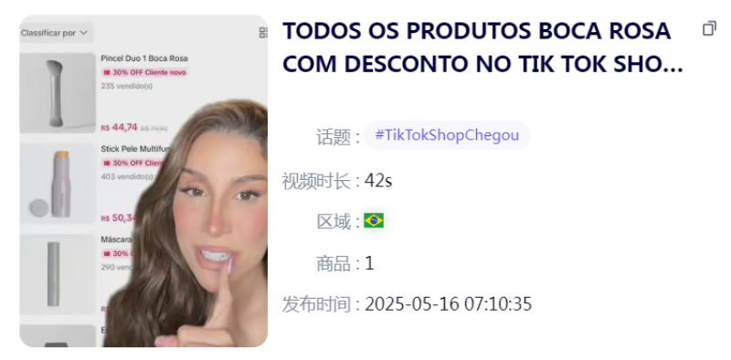 近期,一家名為Boca Rosa BR的美妝品牌迅速崛起并大放異彩,在TikTok巴西市場的表現堪稱驚艷,多款產品剛上架便強勢沖進本土熱銷榜前10。據權威數據平臺Echotik數據,在TikTok巴西上架僅僅半個多月,Boca Rosa已經成功售出了4萬多件商品,累計銷售額為308萬。目前,該品牌在TikTok平臺上已經積累了超過15萬的粉絲量,收獲了高達150萬的點贊量,影響力還在不斷擴大。
