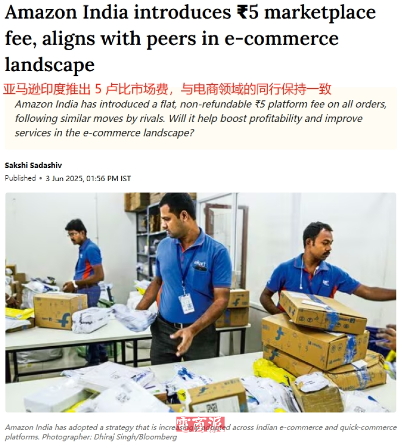 日前,亞馬遜印度宣布對平臺所有訂單統一收取5盧比的平臺服務費(Marketplace Fee)。據了解,此次新增的收費政策可謂相當“簡單粗暴”,政策適用于所有訂單,無論訂單金額大小、商品數量多少,即使是Prime會員也不例外。