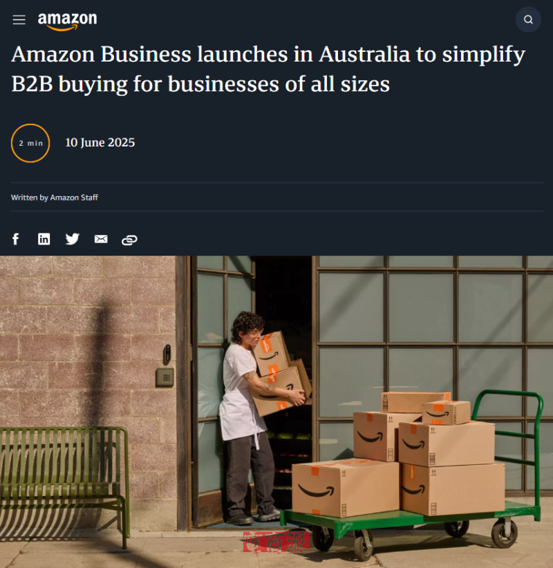 6月12日消息,亞馬遜正式在澳大利亞站點推出Amazon Business(亞馬遜企業購),進一步擴張其全球B2B市場。繼加拿大、法國、德國、印度、意大利、日本、墨西哥、西班牙、英國和美國之后,澳大利亞是Amazon Business上線的第11個國家。目前,澳大利亞B2B市場規模預計達500億美元,在電商滲透不斷加深、企業數字化采購需求上升的背景下,該市場正快速增長。