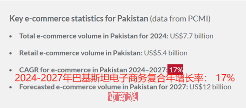 巴基斯坦電商行業呈兩位數增長 圖源:PCMI