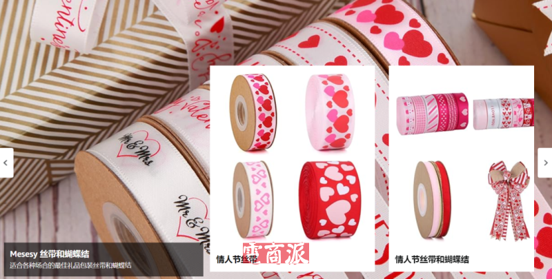基于對目標市場的深入研究,Meseey針對不同的節日和季節,推出了一系列主題鮮明的絲帶產品:在圣誕節期間,推出帶有圣誕老人、雪花、圣誕樹等元素圖案的絲帶;復活節時,推出以彩蛋、兔子、小雞為主題的絲帶;在浪漫的情人節,推出色彩鮮艷、布滿愛心、帶有“I LOVE YOU”字樣的絲帶。