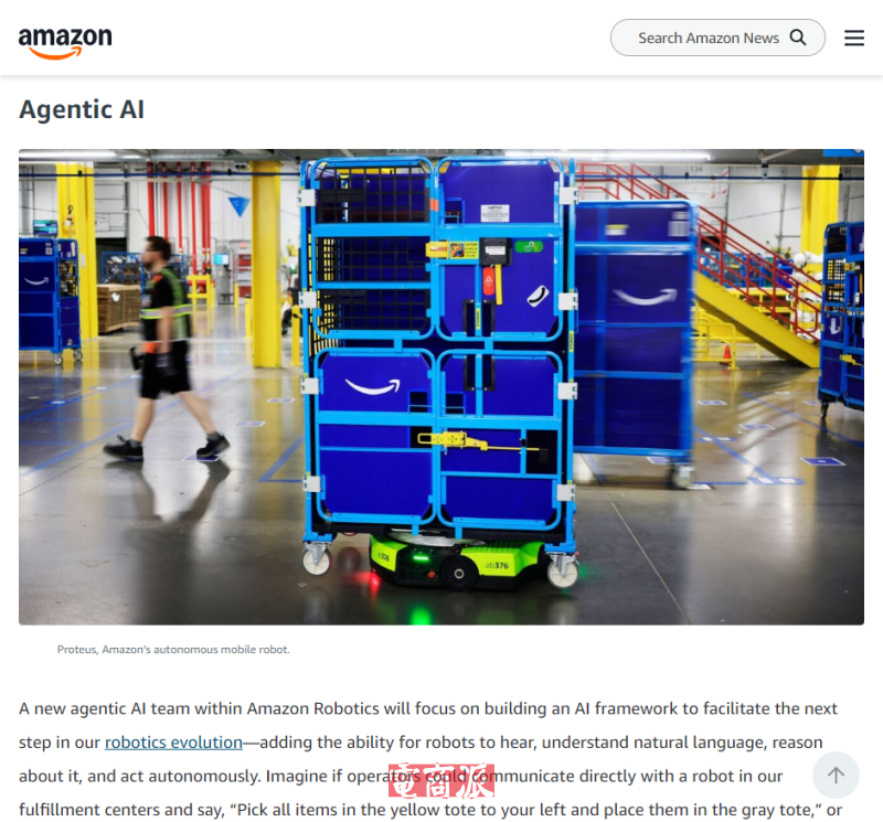 6月14日消息,亞馬遜推出三項(xiàng)人工智能創(chuàng)新,提升配送準(zhǔn)確性、需求預(yù)測(cè)能力與機(jī)器人智能化水平,加速包裹送達(dá)并優(yōu)化整體物流流程。這些創(chuàng)新包括:生成式AI地圖技術(shù)Wellspring;支持亞馬遜供應(yīng)鏈的人工智能需求預(yù)測(cè)模型;以及用于機(jī)器人技術(shù)的全新代理人工智能功能。