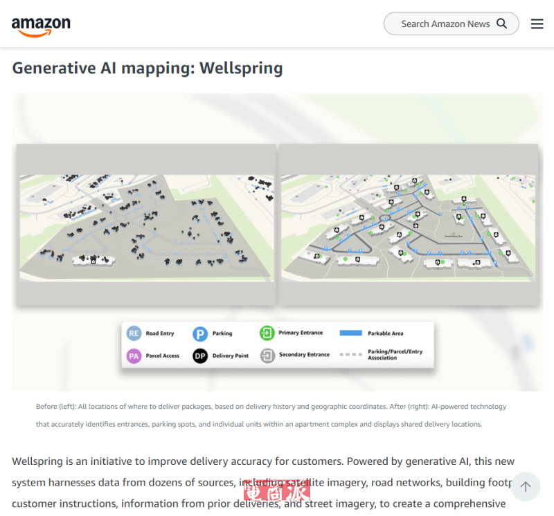 Wellspring能夠識(shí)別建筑物入口、郵件投遞點(diǎn)、停車位與公寓單元之間的對(duì)應(yīng)關(guān)系。通過(guò)分析歷史送達(dá)照片與位置信息,該系統(tǒng)可提示司機(jī)最便捷的投遞路徑。自2024年10月在美國(guó)啟動(dòng)試點(diǎn)以來(lái),Wellspring已成功將280萬(wàn)個(gè)公寓地址映射至14,000多個(gè)建筑群,并識(shí)別了400萬(wàn)個(gè)地址的可用停車位置。該功能有望顯著減少因地址混淆造成的誤投、遲投情況。